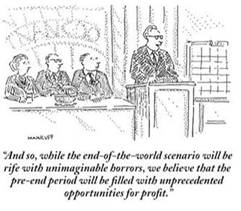 A prominent congressional representative told us in 2017 that the world will end in 12 years (so just pay for it.) Most of those 12 years are in the past now. Are we prepared for what happens if 2030 shows up and the world has not ended? How can we insure continued survival of humanity, while positioning ourselves for maximum profit?
